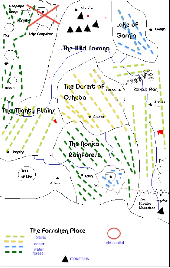 Tacheia Fygi (Tak e a Fa hi) -(Tacheia is Greek for speed. Fygi is greek for flee) new Elvish capital after the old one was overrun LONG LONG LONG ago. Has secret passage way into the mountains. Tacheia Fygi is being taken over once again by the darkness, but from the inside-out, more of an undercover thing. The capital is an island shaped as a perfect circle in the middle of the lake between the ocean and the rain forest. Long ago when the old capital was taken over, the elves retreated away from the darkness, including the Aphars, men, and other evil creatures. Most of the elves like the Namen and Fae tribes traveled all the way across the land to the Northern Mountains. Some tribes retreated through the secret tunnel to the Southeast mountains. Representatives from the three tribes reside in it, but the men/Aphars are slowly..."occupying" it....